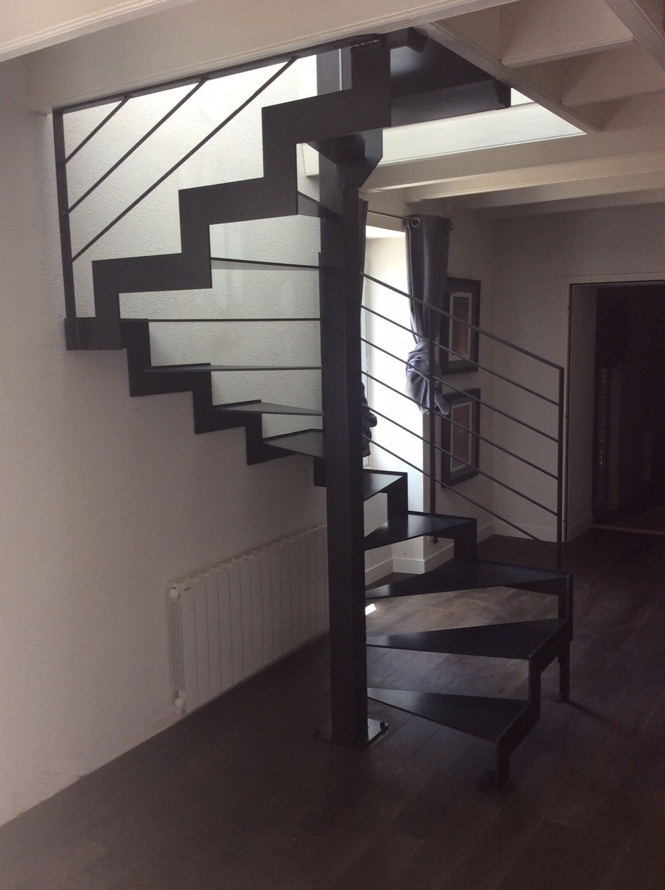 L’escalier hélicoïdal ou colimaçon est essentiellement composé d’un mât central où sont fixées toutes les marches. En grimpant les marches, on tourne autour de celui-ci. Ce type d’escalier peut également être conçu sur un limon central. Chaque marche est alors fixée sur celui-ci, dans un mouvement circulaire. L’escalier hélicoïdal se décline essentiellement en deux catégories : rond ou carré.